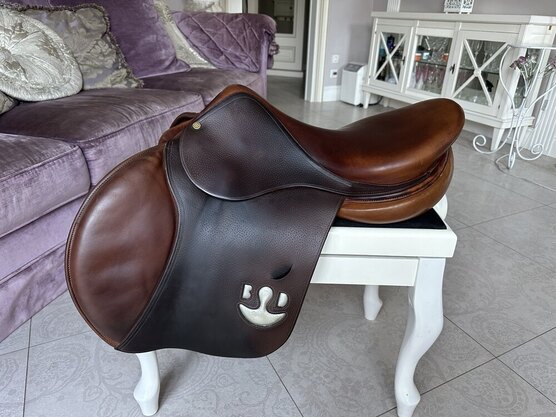 Седло, которое не может оставить равнодушным…невероятное ощущение одного целого с лошадью, при этом плотная, чуть углублённая посадка, позволяет шенкелю находиться в стабильном правильном положении без усилий. Наполнение из пены. 33-34 по лошади, подходит на высокие холки. Седло в отличном состоянии, в оригинальном чехле.
