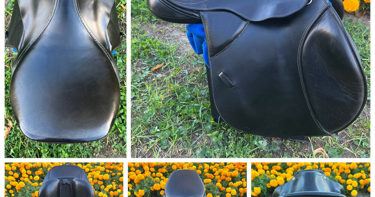 Конкурно-универсальное седло на прямую спину. U-Ленчик и передняя лука с вырезом под холку обеспечивают свободу трапециевидных мышц, хорошо подойдет на большие, торчащие лопатки. Подушки набивные, ленчик обжимной. Канал сзади 4 пальца, спереди расширяется. Приструги в идеале. Есть потертости кожи со стороны канала, в остальном идеальное состояние. Чехол в комплекте.