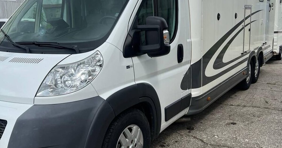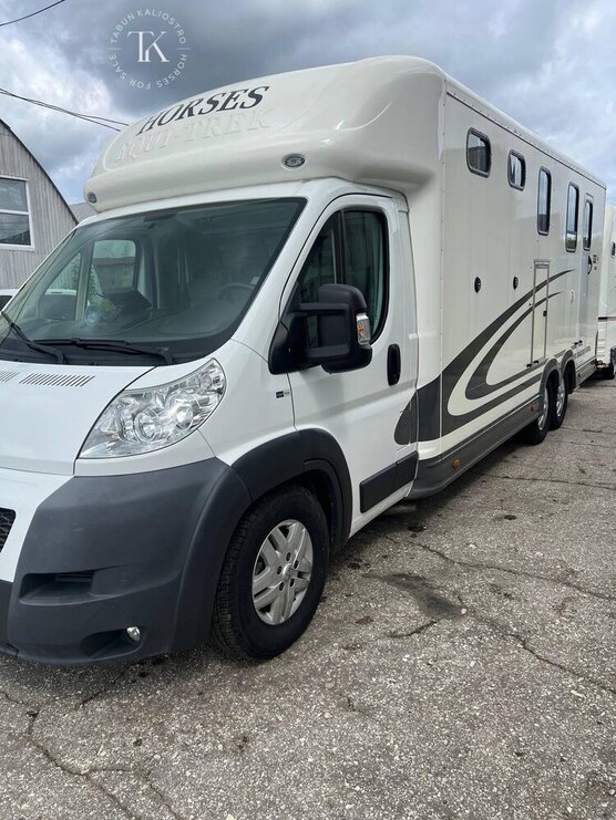 Безопасная перевозка двух лошадей, конструкция: уникальная трехосная схема – обеспечивает лучшую устойчивость и плавность хода. Жилая зона: просторный интерьер - больше места, чем в стандартных моделях, угловой диван (L-образный), раскладывающийся в двуспальную кровать, кухня с раковиной и газовой плитой, отдельная ванная комната.