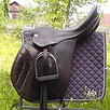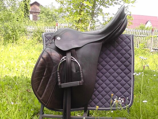 Австрийское конкурное седло Karl Niedersuss (старейшая австрийская фирма). Размер по всаднику 17,5, по лошади 32-33 (по Престижу). Без сбора. Седло в рабочем состоянии, подойдет для лошадей со средней/высокой холкой. Конструкция крыла обеспечивает свободное движение плеча лошади, в т.ч. очень хорошо для заездки молодой лошади. Ширина канала в середине 6 см (свободно 3 пальца). Сиденье у всех седел этой фирмы жестковато, вопрос решается гелем на седло.