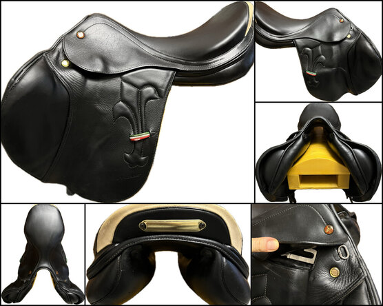 Prestige Arezzo 17/32-33— модель профессионального конкурного седла итальянского производителя Prestige. Подходит для лошадей со среднеширокой прямой спиной, по холке — на среднюю.