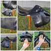 Глубокое конкурное седло с большими внешними передними упорами, просторным позвоночным каналом( подойдет на проблемные плечи, крупную лошадь), обжимным ленчиком и набитыми шерстью подушками с возможностью коррекции. Для крупного всадника.