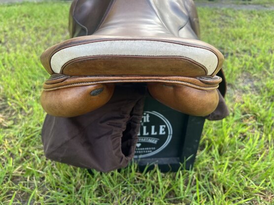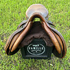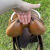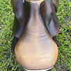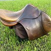 Европейская модель Equipe: комбинация коричневой кожи двух оттенков, двойная кожа на крыльях, упоры небольшого размера, компактное, достаточно широкий позвоночный канал.