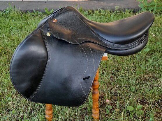 Седло с тонкой вилкой ленчика, контактное, из не скользящей телячьей кожи. Подойдет на высокую холку. Канал 4 пальца, между кнопок 12-13 см