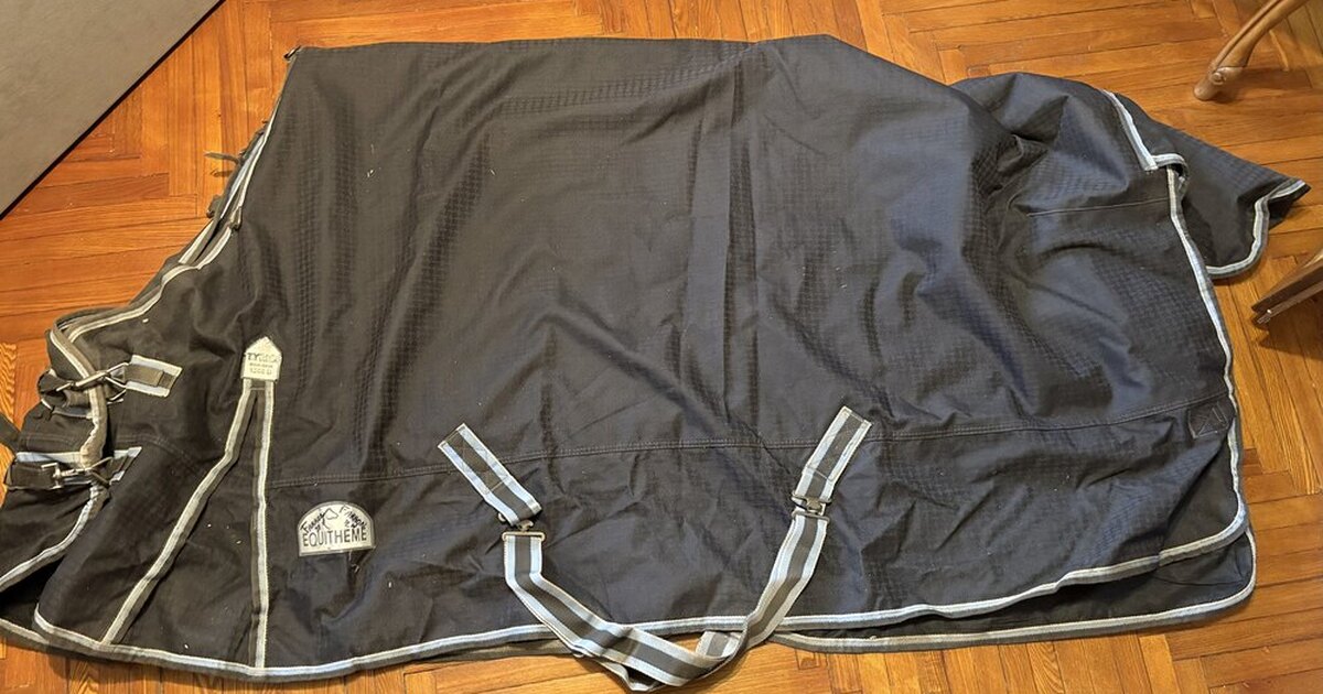 Описание: · Зимняя попона Equitheme (145 см) – 300 г утеплителя, прочная «антивандальная» ткань, мех на холке для защиты от натирания. Нет только подножных ремешков.