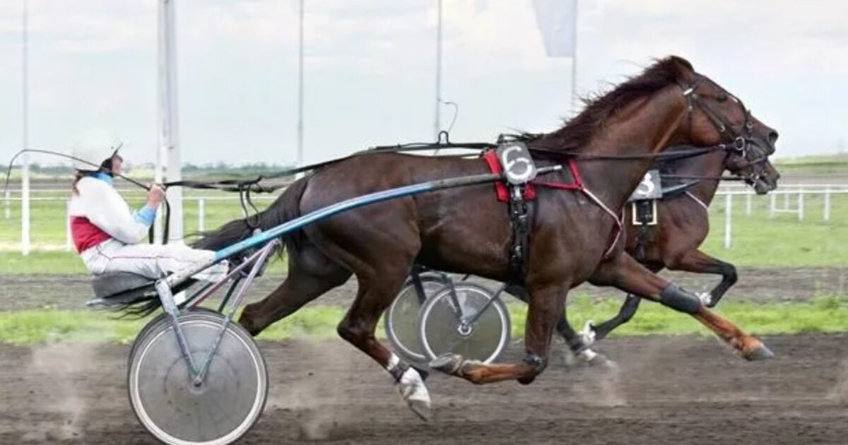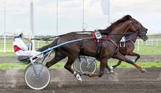На фото представлен жеребец хозяйства русской рысистой породы Кофеин (Фаворит-Кобра) 2010 г.р., лучшая резвость 1.58.4.