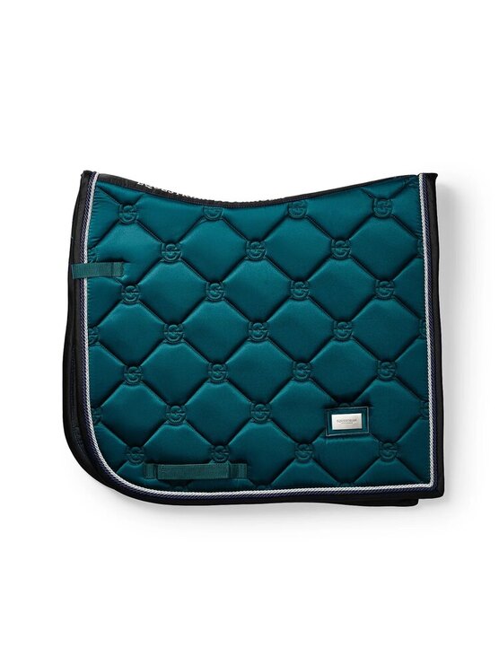 Выездковый вальтрап роскошного изумрудно-зеленого цвета с темно-синими деталями от Equestrian Stockholm. Специально разработан с учетом анатомических особенностей вашей лошади. Изготовлен из глянцевого, грязеотталкивающего материала, который хорошо пропускает воздух и сохраняет лошадь сухой. Идеально сочетается с ушками и бинтами из той же коллекции. Размер :Full Цена : 17970р.