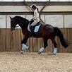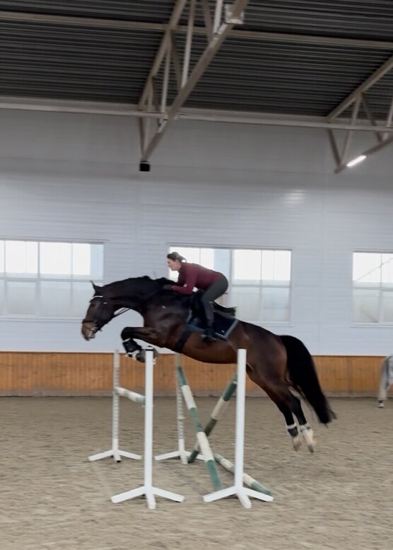 В тренинге с апреля 2024 года. Очень смышленый. Четыре месяца назад начал работать в конкурсном направлении, под седлом мастера спорта.