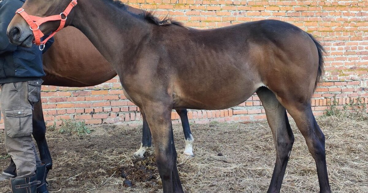 Продается гнедая кобылка РВП (Эскуриал – Заркана) 03.04.2025. Перспектива роста 168+см.