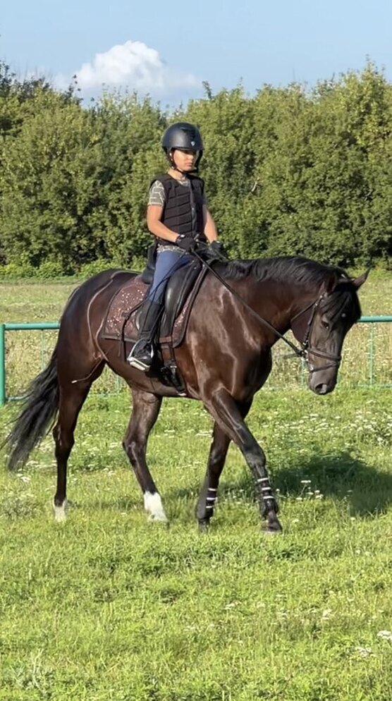 Детские езды, готовится к Юношам. Лёгкий, ровный по контакту, знает плечо, уступку, траверс, принимание на рыси, полупируэты на шагу. Хорошие подъемы и переходы.