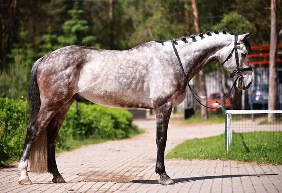 Очень талантливый, душевный, чуткий и старательный. На данный момент работается в выездку под седлом европейского всадника, знает боковые, предлагает темп. Для разнообразия прыгает, в конкур только под уверенного всадника, активный, хороший прыжок, гибкий. Очень общительный и контактный, самый лучший верный друг, очень разговорчивый, нуждается во внимание и дарит его в ответ. Отличный в быту, колется, пшикается, в коневоз заходит на 5+.