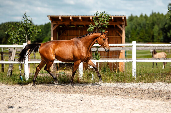 - плац с еврогрунтом 40 на 60 метров оснащенный системой автополива, 12 левад для выгула лошадей (30х30 м. – 2 шт., 15х15 м. – 9 шт., 15х20 м. – 1 шт.), шпрингартен для обучения молодых лошадей (46х26 м.), летняя конюшня на 10 денников.