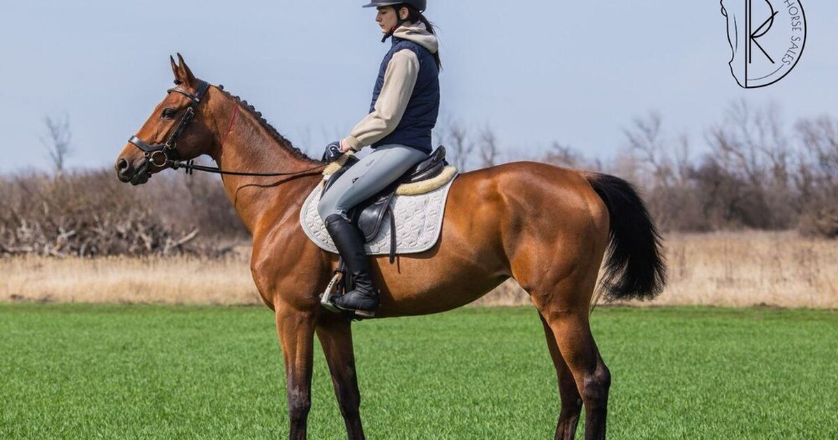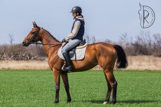 Русской верховой породы, (от Вестфальского Рубин (Cornet Obolensky и РВ Беатриче (Aromats). Была в матках. Жеребилась. Сейчас втягивается в конкурное направление.