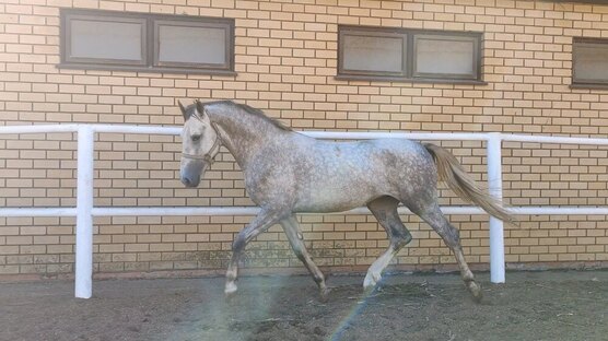 Серый орловский жеребчик 2023 гр. Красивый, на просторных и приятных движениях, мягкий на рот. Рост около 160см. Не испытывался, недавно заезжен под седло. Продается, как хобби класс, не в бега.