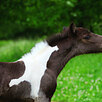 Жеребец, вороно-пегой масти, дата рождения 28.05.25, длинноногий, экстерьерный, шикарная родословная, отец чемпион породы, наследует светлые масти. Родители: мама Еланга, кобыла изабелловой масти рост 107 см, отец Серпантин солово-пегой масти, рост 107см.