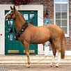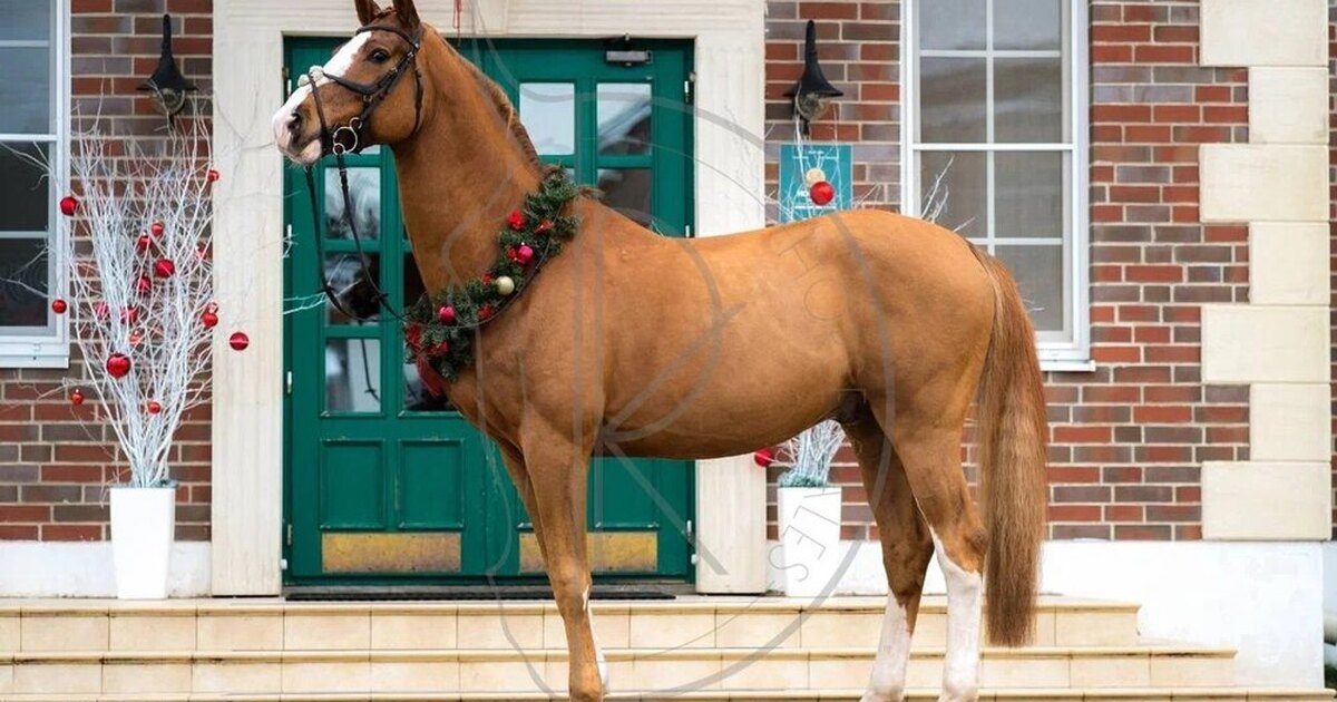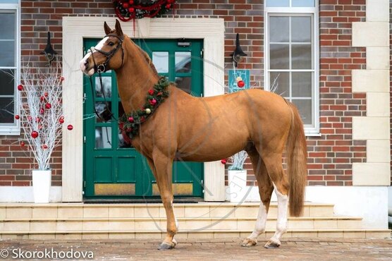 Голштинской породы. Конкур до 120 (дома до 130), одиночные выше. Розовый паспорт, внук Cor de la Bryer. Работает под КМС.