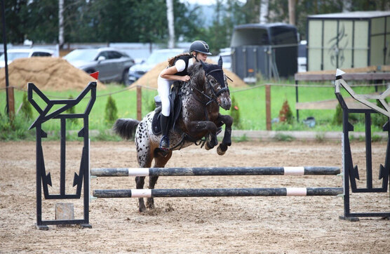 Неплохо выезжен, знает трюки, стартовый опыт в конкуре, на свободе напрыган до 100 см.