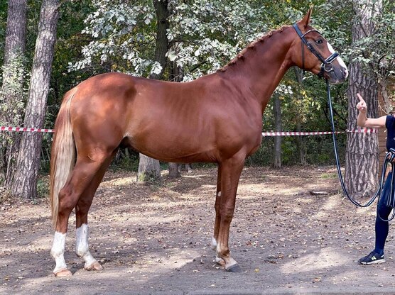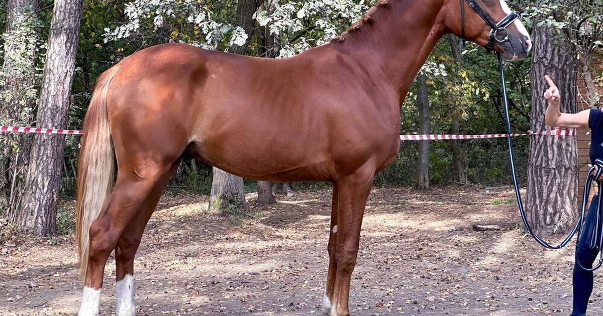 Жеребец ганноверской породы (Вельтрув - Хлопота) 2022 года рождания, рост 170 см в холке.
