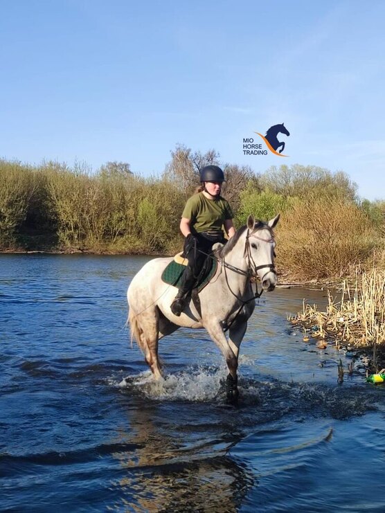 Работает в конкурном направлении под любителем, напрыгана в шпринте до 120, под верхом до 80. Пробовали сажать ребенка - справился без проблем. Под сильным всадником кобыла раскроет весь потенциал. Отлично работает на всех площадках, ходит в поля, заходит в воду. Кобыла сильная, мощная, имеет мягкие, удобные аллюры, мягкий прыжок. В быту без проблем, очень ласковая и добрая лошадь, не отбивает и не кусается. Бронебойная психика, ничего не боится. В коневоз грузится отлично. Пшикается и бреется без проблем.