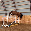- плац с еврогрунтом 40 на 60 метров оснащенный системой автополива, 12 левад для выгула лошадей (30х30 м. – 2 шт., 15х15 м. – 9 шт., 15х20 м. – 1 шт.), шпрингартен для обучения молодых лошадей (46х26 м.), летняя конюшня на 10 денников.
