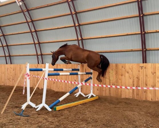 Работает согласно возрасту, под верхом напрыган до 110 одиночные, маршруты 90см, на свободе до 135 см.