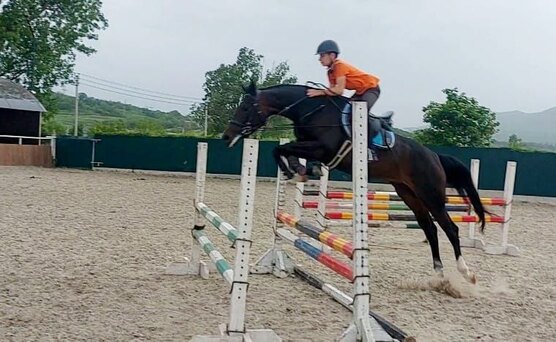 На свободе напрыгана до 130 см., может выше. Под верхом удобная на всех аллюрах, уже ходит кавалети, прыгает одиночные барьерчики. Импульсивная, но в меру, слушает всадника, и хорошо контролируется. Работается берейтором, иногда подсаживается ребёнок.