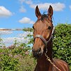 Спокойный, контактный, ласковый, отличная стабильная психика. Жеребец сильный, крупный, на приятных движениях. В работе быстро воспринимает информацию, не форсируется. Проходит тренинг молодой лошади. Готовится к заездке.