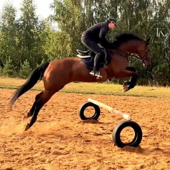 Имеет бронебойную психику, очень доверяет человеку, ласковый и добрый. Стартовый опыт до 100 см, связки до 120 см. Делает боковые элементы, одиночную менку, осаживания, пируэты на шагу, повороты на переду. Сильный и честный. Подойдет под любого всадника. Имеется договор купли - продажи, паспорт ВНИИК, паспорт ФКСР, чипирован.