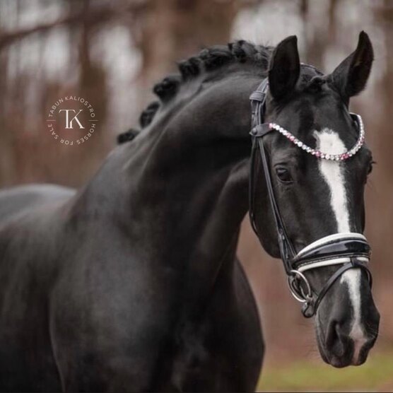 Отец - Glamourdale, по маминой линии есть: Sezuan, Zack, Sir Donnerhall. Рождена в Германии. Добрая, ласковая и общительная. Имеет шикарный выход шеи и затылка, три правильных аллюра. Не смотрящая, очень удобная под седлом.