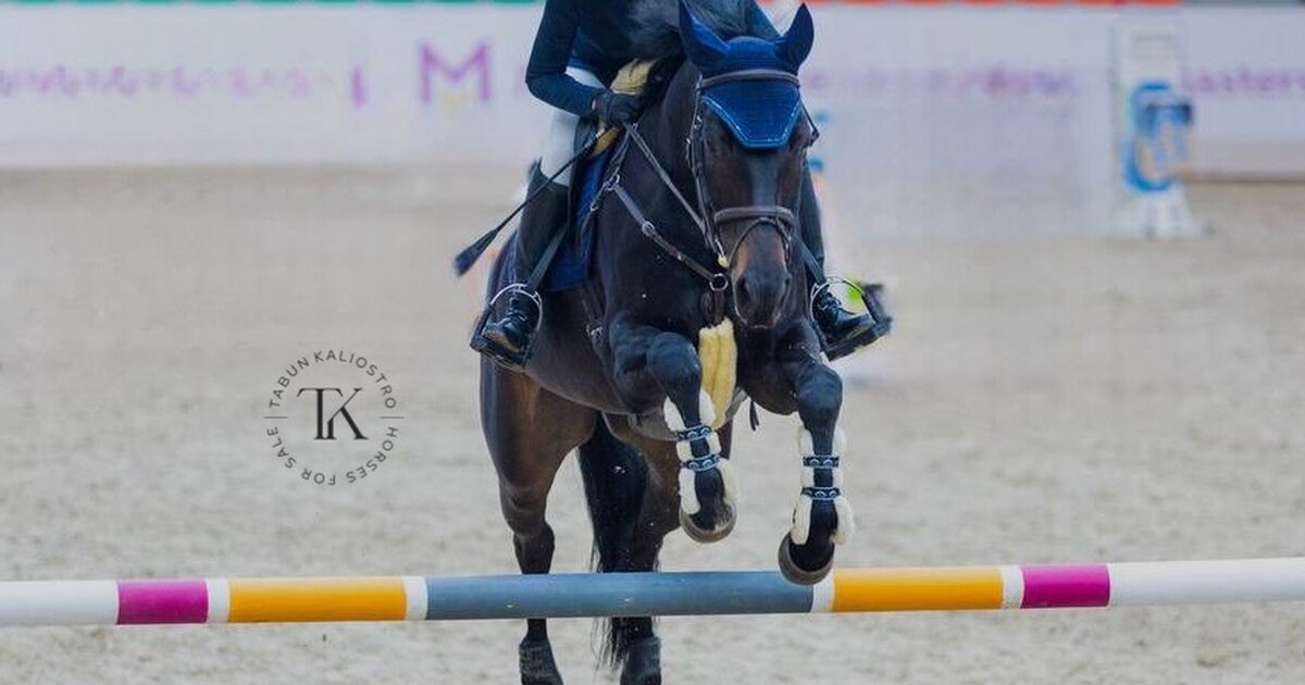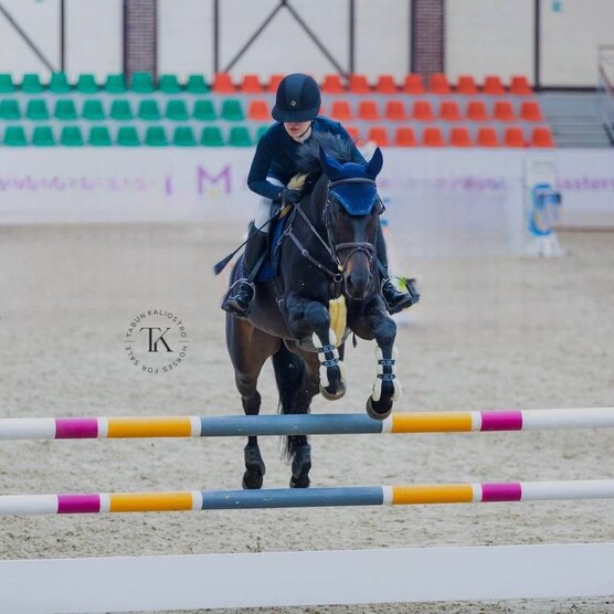 Спокойная, добрая, не бьет, не кусается. Подойдет в любую дисциплину, под ребенка и любителя. Стартовый опыт до 100 см. Не смотрит, не встает. Знает шагалку, гуляет в леваде. Хорошо ведет себя в поле. Все манипуляции без проблем.