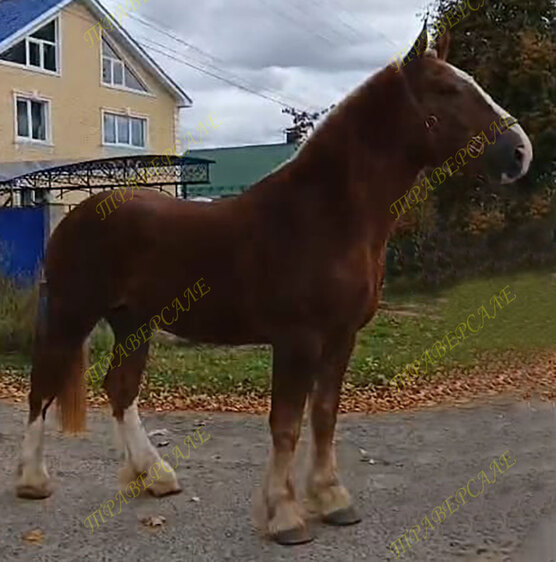 ДЛЯ ЛЮБИТЕЛЕЙ ВЫСОКИХ ПОРОД жеребец, масть рыжая, помесь советского тяжа с шайром, 2023 год рождения, рост 170 см. Из документов будет иметь Договор купли-продажи.