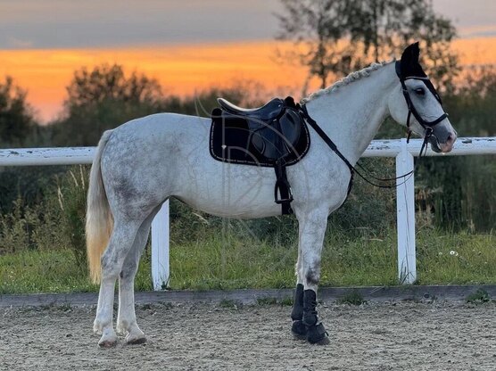 - Спортивная помесь. Отлично подготовлена для маршрутов и шпринтов. Готова к стартовому сезону. Смелая, прыгает всё и из любых условий, как под ребёнком, так и под опытным всадником. Перспектива выше. Шпринт до 110 см.