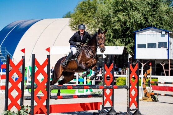 Имеет стартовый опыт в троеборье и в конкуре с высотой до 130 см. Перспективна на маршруты 140+.