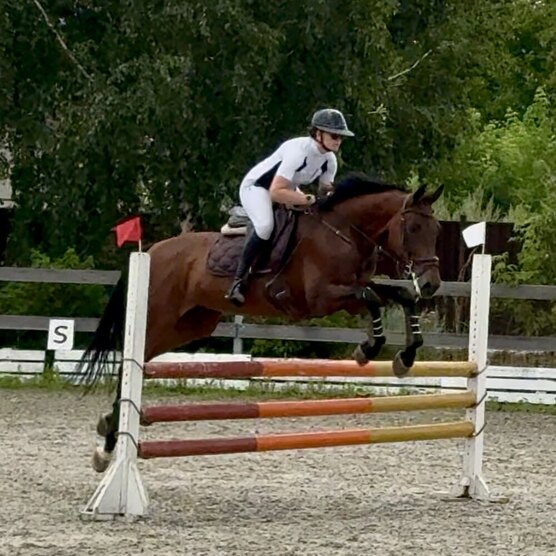 Легкий, очень простой в езде. На мягкой руке и ноге, управляется пальчиками. Стартовый опыт под любителем до 100см, дома 110-115. Всегда выручает, прыгает все конфигурации. Хорошо подъезжен(боковые, менка). Есть видео под ребенком, подойдет как учитель на прыжки. Продажа с лошадью не связана, нужна лошадь уровня повыше. По здоровью проблем нет, любые проверки. Находится в тренинге, выезжает на соревнования.