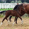 Deluxe Red Start - гнедой жеребчик от лицензированного вестфальского жеребца Diamant de Royal (премированный жеребец, второй резервный победитель керунга) и KWPN кобылы U-too (Prf.M.-J, выступавшей в Европе на уровне 160см CSI 2-3* ), обладатель классного галопа и рычагастого толкучего зада, уже везде пытается демонстрировать свой прыжок ????????