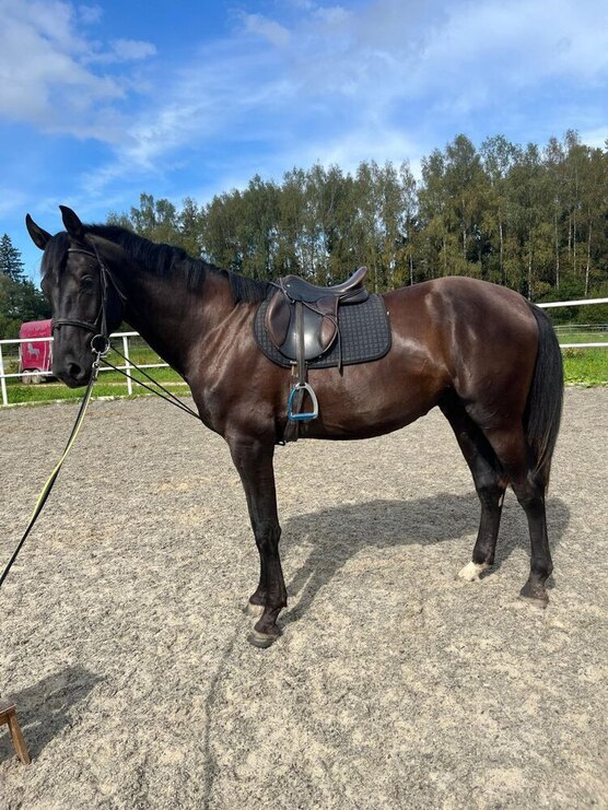 Находится в неспешной заездке, не форсируется. Супер адекватный конь по голове, никаких нареканий ни в быту, ни в работе.
