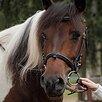 Гнедо-пегой масти, красивая гетерохромия глаз (правый-голубой), нарядные грива и хвост.
