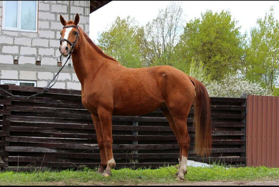 Заезжен осенью 2024, не форсируется, приучен ко всем манипуляциям. Напрыган по одиночным препятствиям до 80 см, шпринт до 80 см. Очень сильный, ничего плохого под седлом не делает. На данный момент находится в легком верховом тренинге.