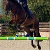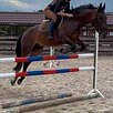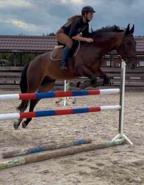 Старты - маршруты до 100 см. Дома - маршруты до 115 см, связки до 125 см. Знает троеборные барьеры. На прыжках выручает. Любит ходить в поля, купаться. Ласковый, любит внимание.