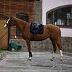 * Готова к ездам по четырехлетним лошадям, находится в выездковом тренинге под руководством МС. Делает уступки, плечи, начали работать траверс, играючи делает принимания, начали работать над менкой. Пробовали ходить жерди, невысокие барьеры – проблем нет, не смотрящая, уверено двигается на барьер;