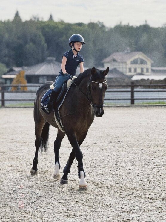 Отличная молодая лошадь с перспективой в любую классическую дисциплину конного спорта.