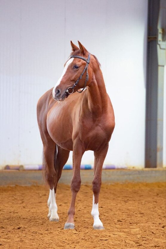 Очень нарядный, с прекрасными движениями. Перспективен в любую дисциплину конного спорта. Поставлен на корду.