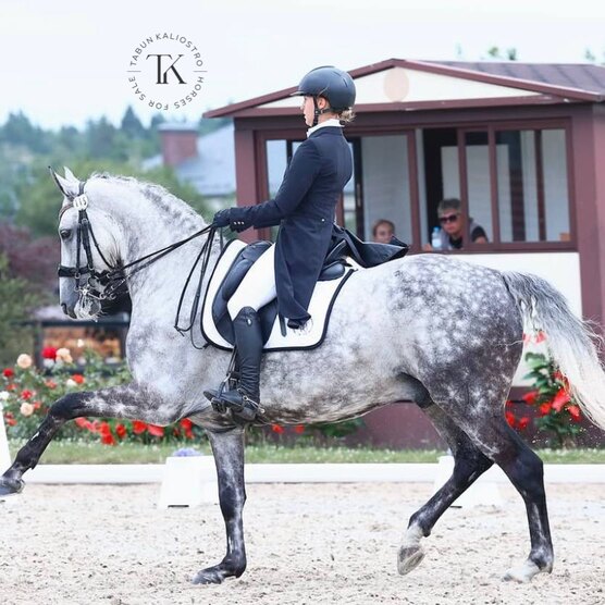 Мерин. Серой масти. Полукровной породы. 167 - 168 см в холке. 2015 года рождения. Отец - Тореадор (Большепризный ганновер).