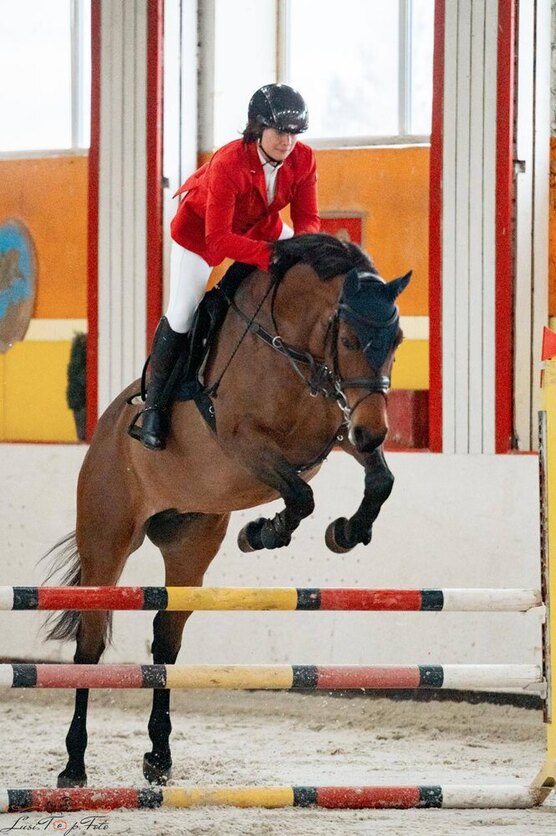 Стартовый опыт в конкуре с высотой препятствий до 100 см. Дома прыгает связки до 120 см. Знает элементы Юношеских езд.