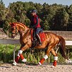 Эластичный правильный шаг с большим заступом и расширением рамки. Сбалансированный поставленный галоп с отличным махом "в горку".