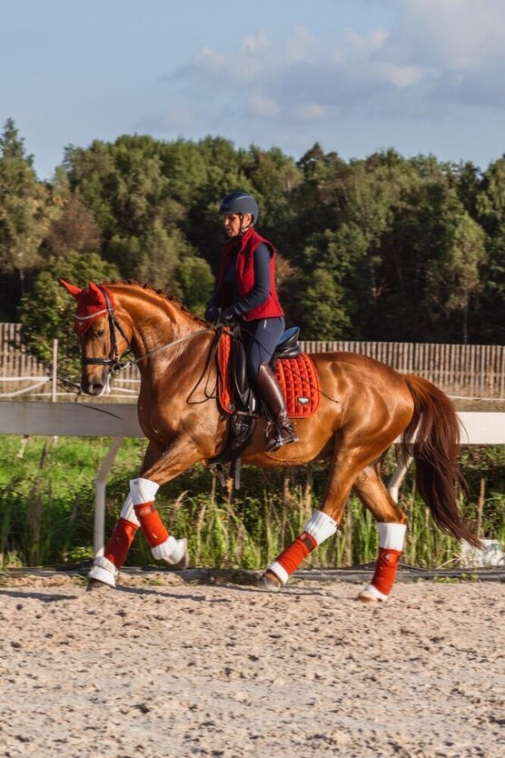 Заезжен летом 2024 г, находится в грамотном профессиональном тренинге по направлению выездка.