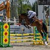 Дома до 120 см, на соревнованиях до 100 см. Не форсируется с связи с тем , что еще растет и очень крупный.