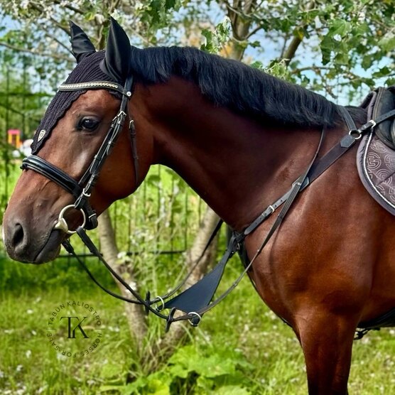 Очень удобный, имеет мощные движения и сильный техничный прыжок, не смотрит на заложения. Адекватный, на кобыл не реагирует, работает, как один так и с другими лошадьми. Прыгает в шпринте до 140 см. Подойдет под уверенного любителя. Не имеет денниковых пороков. Имеется полный пакет документов.