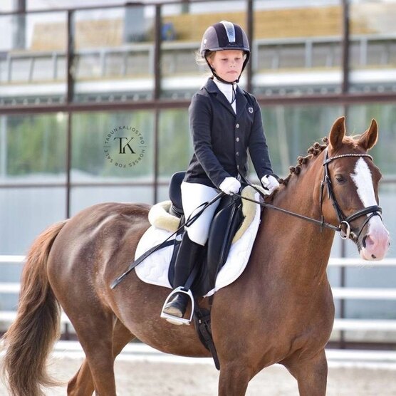 Универсальная. Хорошо выезжена, удобная, слушает всадника, легкая по контакту, подьемы-переходы, уступки. Ранее прыгала маршруты до 100 см, связки до 120 см, в данный момент не в конкурном тренинге.