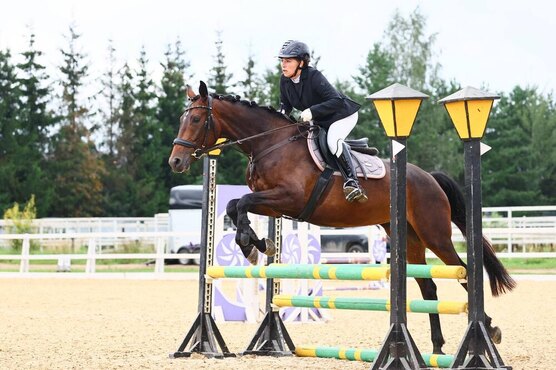 * Прыгает согласно возрасту на стартах маршруты 90 см, дома 100 см, связки выше. Готовится к соревнованиям по выездке по молодым лошадям.